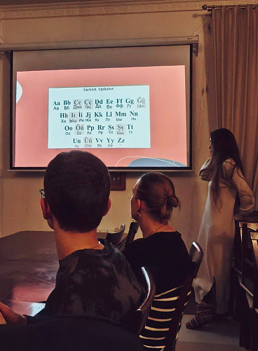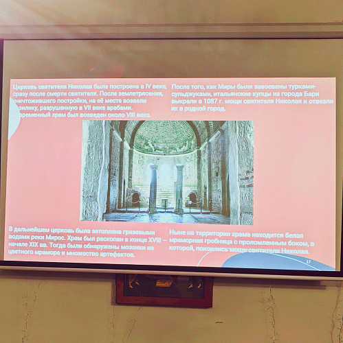 Занятие было разделено на две части: практическую, где собравшиеся в игровой форме освоили основные фразы приветствия и благодарности на турецком языке, и теоретическую, в рамках которой ребята послушали информацию о православных храмах на территории Турции (их истории, архитектуре, духовной значимости), а также вкладе России в сохранение этих святынь.
