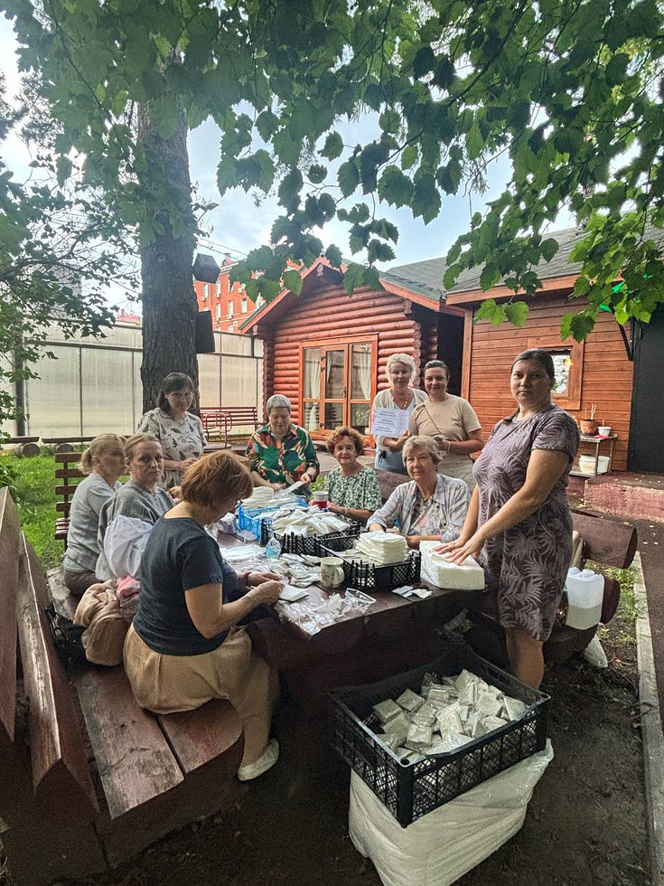 1 августа 2025 года в день памяти преподобного Серафима Саровского в храме Всех преподобных отцев Киево-Печерских состоялась встреча "Помощь ближним" на которой были подготовлены к отправке изготовленные ранее 780 комплектов сухого душа, упакованы чай, кофе, сухое питание и сладости, принесенные прихожанами храма, а так же карманные молитвословы.