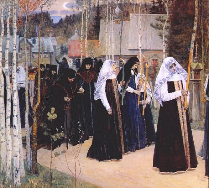 Михаил Нестеров активно участвует впроцессе духовного поиска, который характеризовал исторический период времени в который творил художник. Его работы отличаются глубокой религиозностью. Он создает картины, в которых отражает собственные размышления о смысле жизни и духовности. Нестеров видит свою миссию в возрождении религиозности русского народа через искусство. Его работы отражают глубокую связь человека с природой и Богом.