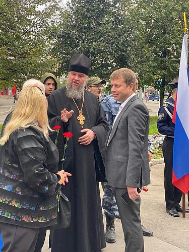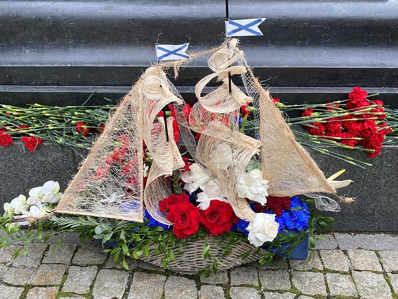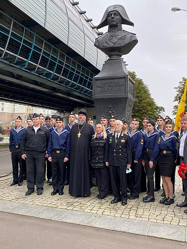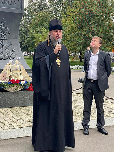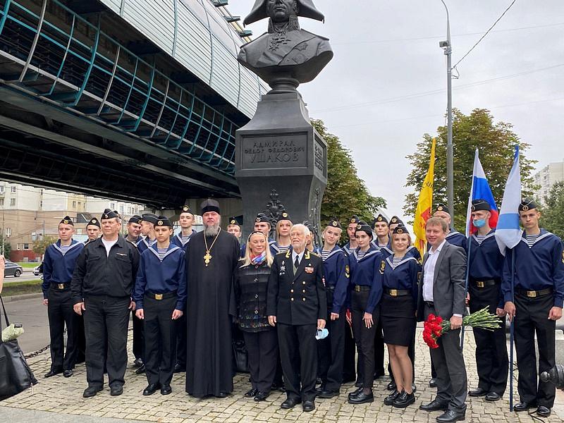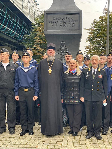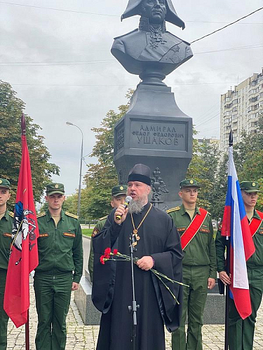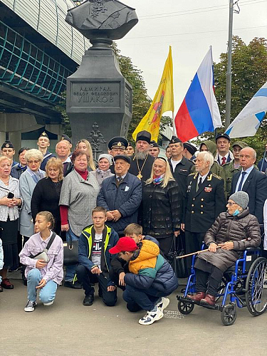 Все присутствующие возложили цветы к памятнику непобедимому адмиралу Флота Российского, святому праведному Феодору Ушакову.