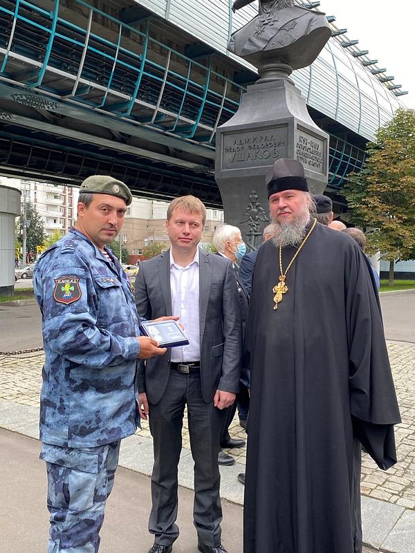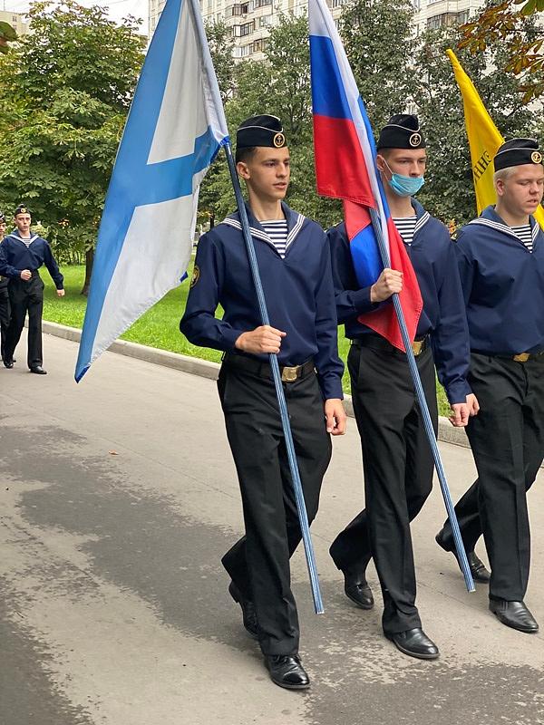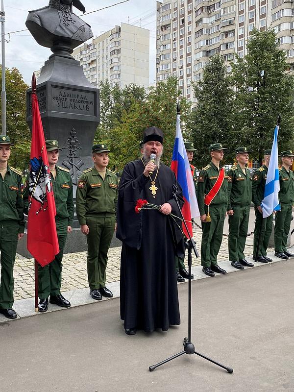 День воинской славы традиционно отмечается особенного широко, как праздник района Южное Бутово. У памятника Святому адмиралу выстроились отряды курсантов Государственной академии водного транспорта и кадетов-юнармейцев школ 1161 и 1883.