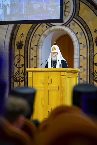 Далее Святейший Патриарх Кирилл представил ежегодный доклад.