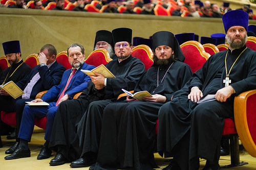 По предложению Его Святейшества было возглашено многолетие Блаженнейшему митрополиту Киевскому и всея Украины Онуфрию, пребывающему в заключении митрополиту Святогорскому Арсению, иным архипастырям, а также пастырям, монашествующим и мирянам Украинской Православной Церкви, претерпевающим гонения за веру.