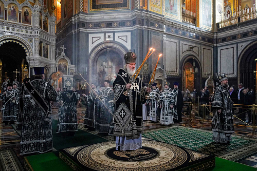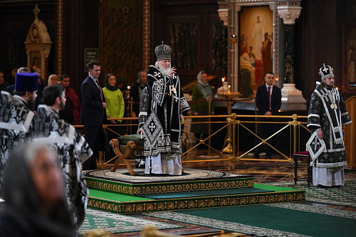 Затем Предстоятель Русской Православной Церкви совершил первую в этом году Литургию Преждеосвященных Даров.