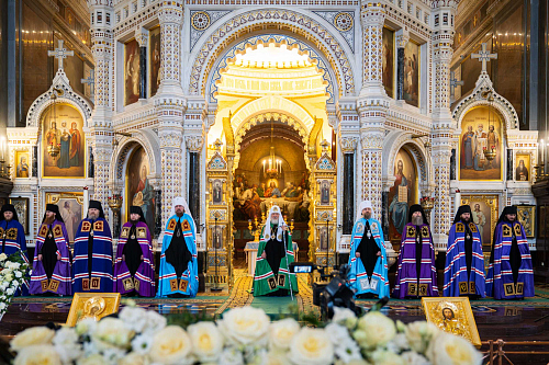 На сугубой ектении были вознесены особые прошения, Предстоятель Русской Церкви прочитал молитву о Святой Руси.