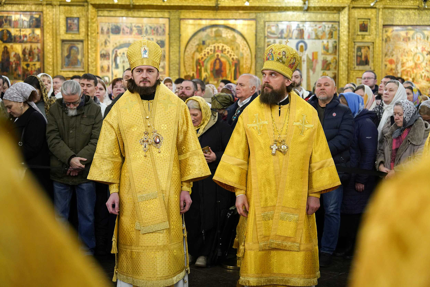 Его Святейшеству сослужили члены Епархиального совета г. Москвы, которые были избраны на Епархиальном собрании духовенства г. Москвы 16 декабря 2025 года: митрополит Воскресенский Григорий, управляющий делами Московской Патриархии, первый викарий Патриарха Московского и всея Руси по г. Москве, наместник Новоспасского ставропигиального монастыря; митрополит Каширский Феогност, председатель Синодального отдела по монастырям и монашеству, наместник Донского ставропигиального монастыря; митрополит Звенигородский Арсений; епископ Павлово-Посадский Силуан, заместитель управляющего делами Московской Патриархии; епископ Раменский Алексий, личный секретарь Святейшего Патриарха Кирилла; епископ Егорьевский Мефодий, ректор Православного Свято-Тихоновского гуманитарного университета, наместник Николо-Угрешского ставропигиального монастыря; протопресвитер Владимир Диваков, секретарь Патриарха Московского и всея Руси по г. Москве, благочинный Центрального округа, настоятель храма Вознесения Господня («Большое Вознесение») у Никитских Ворот г. Москвы; протоиерей Владимир Чувикин, настоятель Патриаршего подворья храмов Николо-Перервинского монастыря г. Москвы, почетный ректор Перервинской духовной семинарии; протоиерей Василий Бабурин, настоятель храма Всех святых во Всехсвятском на Соколе г. Москвы; протоиерей Андрей Речицкий, благочинный Иверского округа, настоятель храма пророка Божия Илии на бывшем Новгородском подворье г. Москвы; протоиерей Олег Корытко, руководитель Референтуры Московской Патриархии, заместитель председателя Патриаршей наградной комиссии, настоятель храма в честь иконы Божией Матери «Живоносный Источник» в Царицыне г. Москвы; протоиерей Иоанн Ермилов, благочинный Рождественского округа, настоятель храма Казанской (Песчанской) иконы Божией Матери в Измайлове г. Москвы; протоиерей Андрей Галухин, настоятель храма преподобного Андрея Рублева в Раменках г. Москвы; протоиерей Валентин Тимаков, настоятель храма Покрова Пресвятой Богородицы в Медведкове г. Москвы; протоиерей Михаил Прокопенко, секретарь Епархиального совета г. Москвы, настоятель храма Воздвижения Креста Господня в Алтуфьеве г. Москвы; иерей Игорь Константинов, настоятель храма Владимирской иконы Божией Матери в Куркине г. Москвы; иерей Алексий Дроздов, благочинный Благочиния ставропигиальных приходов и Патриарших подворий вне г. Москвы, настоятель храма преподобного Сергия Радонежского на Рязанке г. Москвы.