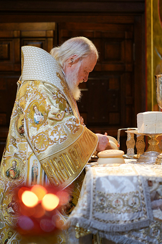 На сугубой ектении были вознесены особые прошения, Предстоятель Русской Церкви прочитал молитву о Святой Руси.