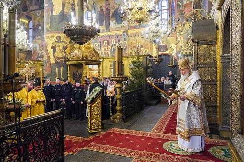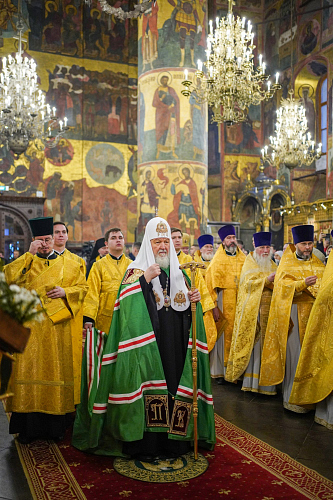 На сугубой ектении были вознесены особые прошения, Святейший Патриарх Кирилл прочитал молитву о Святой Руси.