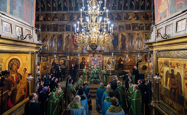 В праздник Успения Пресвятой Богородицы Предстоятель Русской Церкви совершил Литургию в Успенском соборе Московского Кремля