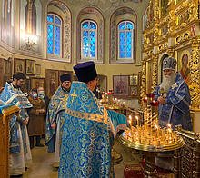 Епископ Дмитровский Феофилакт возглавил Божественную Литургию в престольный праздник храма иконы Божией Матери «Отрада и Утешение» на Каховке
